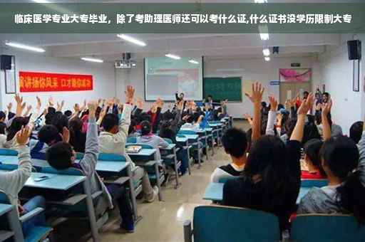 临床医学专业大专毕业,一般都是考助理医师证,然后做相关的工作后在考医师资格证; 据《中华人民共和国执业医师法》及有关规定具有下列条件之一的,可以参加医师资格考试: (一)具有高等学校医学专业本科以上学历,在执业医师指导下,在医疗、预防、保健机构中试用期满一年的; (二)取得执业助理医师执业证书后,具有高等学校医学专科学历,在医疗、预防、保健机构中工作满二年;具有中等专业学校医学专业学历,在医疗、预防、保健机构中工作满五年的。 (三)具有高等学校医学专科学历或者中等专业学校医学专业学历,在执业医师指导下,在医疗、预防、保健机构中试用期满一年的,可以参加执业助理医师资格考试。 以师承方式学习传统医学满三年或者经多年实践医术确有专长的,经县级以上人民政府卫生行政部门确定的传统医学专业组织或者医疗、预防、保健机构考核合格并推荐,可以参加执业医师资格或者执业助理医师资格考试。考试的内容和办法由国务院卫生行政部门另行制定。