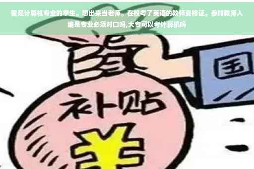 至于在具体的学校你能不能担任英语老师,这要看学校自己的规定。你虽然是计算机专业毕业的,但有的学校(比如一些乡镇中小学等)因师资缺乏,可能会允许你当英语老师,但一般条件较好的学校,必须要求教师的专业对口,是不允许你跨学科承担教学科目的,甚至跨专业都不行。
