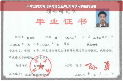 不对口的大专可以考毕业证书。因为你问这个问题应该是我国普通全日制中等职业教育技术高中的学生,也就是中专生,中专生要想读全日制大专就必须参加对口高考,如果不对口的大专说明就是非全日制大专,非全日制大专你就只有一个毕业证