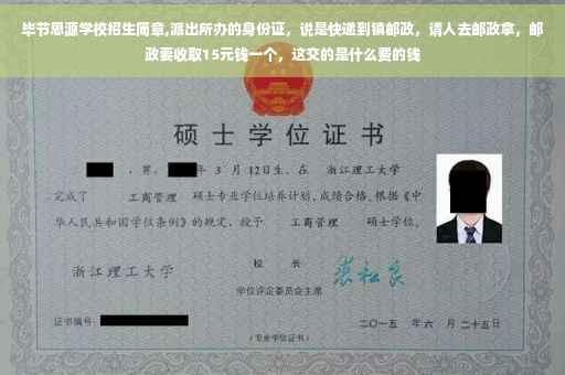 派出所办的身份证,说是快递到镇邮政要收取15元钱一个;交的邮政快递费::