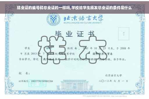 不一样。业证书的编号是学校内部的编号,毕业证书编号是统一的编号