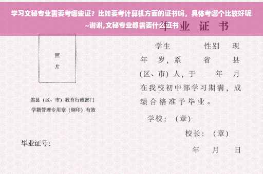 需要中文证书以及四六级的英语等级证书,我们说文秘专业,一定要有过硬的书写能力和英语表达能力,这样才能够胜任文秘的工作,因为现在的企业都会有涉外的业务,而且还要写一些相关的文书,所以才需要掌握相关的技能