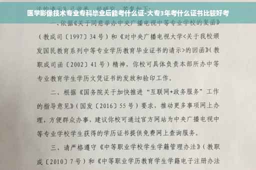 大专医学影像技术毕业,工作后需要考放射医学技术专业技师资格证。毕业之后可以考,CT、MRI、技师上岗证,不能考执业助理医师的,只的医学影像学的可以考,你只能考技师。医学影像技术专业因为学历专业受限制,执业医师考试不允许参加。