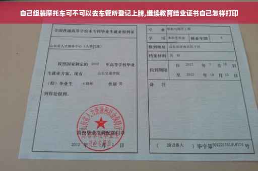 组装摩托车不可以上牌照。必须要有合格证及电脑打印的机动车专用发票才能上牌,也没有生产准入的光盘目录,所以正常条件下是不能上牌的,自然也就无法合法上路,如果被交警发现,是可以被扣车、罚款的。机动车上牌是指将机动车按照《中华人民共和国机动车登记办法》完成全套注册登记手续。自己组装的摩托车可以注册登记。但必须先取得国家生产许可证,否则无法办理注册登记。根据《中华人民共和国机动车登记办法》第二章 注册登记 第十三条 有下列情形之一的,不予办理注册登记: