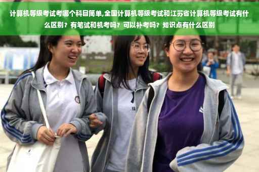 一个是国家的,一个是江苏省的,考试通过后发的证是不同的机关。所以说不一样的。 都有笔试和上机考试。 不可以补考,但是你可以下一次继续考,没有限制的每年有二次机会。 这个要看你考什么语种了。 以前我们在学校的时候,计算机二级是通过后才可以拿学位的。我是上的扬州大学,当时我们老师都让我们考江苏省的二级,一方面江苏省的二级在江苏省内比国家的吃香,另一方面江苏省的二级很多省也是通用的。、 不过江苏省的计算机等级考试相对难的。你要做好心理准备,我是考了四回才过。