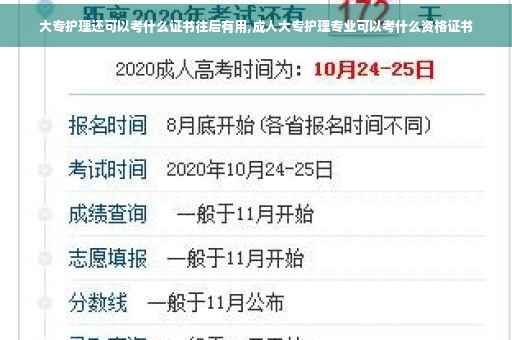 大家好,关于护理大专考几类证书的问题,于是小编就整理了4个相关介绍护理大专考几类证书的解答,让我们一起看看吧。