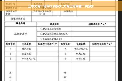 大专3年制学费一般都是4000-5000/年(2个学期的)5000居多,一些特殊专业比如艺术,美术,建筑类会比正常年制多一年(本科是5年,专科有的是3年,有的是4年)还有极个别专业比如软件工程学费是6000-8000/年8000居多,住宿费依据各学校不同一般在600-1200之间。