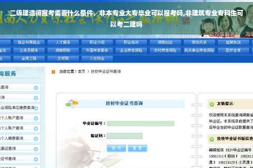 2、具备其它专业中专及以上学历并从事建设工程项目施工管理工作满5年。3、从事建设工程项目施工管理工作满15年。这是二级建造师的报考条件。证件当然需要的是毕业证和身份证,还有加盖公司公章的工作年限证明,另外还有照片等。你的专业不对口,如果是大专及以上学历,需要工作满2年。是可以用专科报名二建的,没有工作经验也不影响申请。但在申请时要准确填写自己的学历信息,如果选择有工作经验选项,则可以不用填写,直接略过即可。