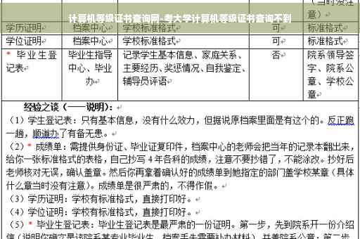 全国计算机等级考试合格证书在网上是暂时查不到的,因为国家教育部考试中心目前还没有建立证书档案查询系统,不过很快就能在网上查询了,因为全国公共英语等级考试已开通证书查询系统,官方网址:chaxun.neea.edu.cn
