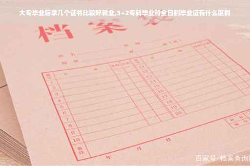 区别是学习学制不同,就业分配不同,升学优势不同。3+2专科毕业需要学习五年,而全日制毕业证需要学习四年。