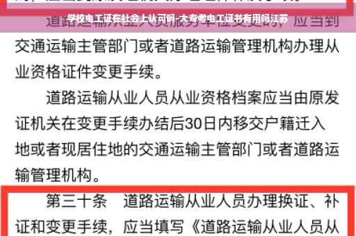 只要通过正规的学习培训并参加相应考试取得的电工证,学校电工证在社会上也与其他电工证一样合法有效。在学校考取电证,能在就业选择中占有较大优势,因为从事电工技术工作的,都要持证上岗,毕业前考取了电工证能省去好多麻烦耶。