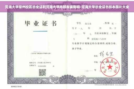 河海大学常州校区的毕业证与河海本部的毕业证没有区别。 因为河海大学常州校区是河海大学的分校,分校生的本科毕业证书由总校统一颁发,证书的封皮样式与文字与总校一模一样,发的都是河海大学的毕业证,没有常州校区字样。
