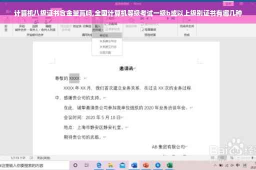 全国计算机等级考试一级b或以上级别证书有二级vb、二级c语言、二级C++、二级Java、二级WEB程序设计、二级VFP、三级PC技术、三级信息管理技术、三级数据库技术、三级网络技术等。 全国计算机等级考试(NationalComputerRankExamination,以下简称NCRE),是经原国家教育委员会(现教育部)批准,由教育部考试中心主办,面向社会,用于考查非计算机专业应试人员计算机应用知识与技能的全国性计算机水平考试体系。
