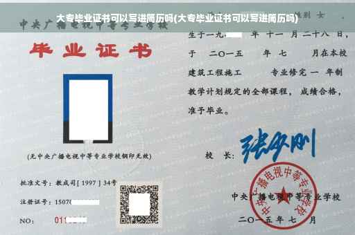 到此,以上就是小编对于大专毕业证书可以写进简历吗的问题就介绍到这了,希望介绍关于大专毕业证书可以写进简历吗的4点解答对大家有用。