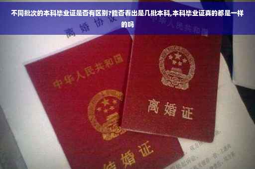 同批次的本科毕业证是一个模样,关键是看盖的哪个学校的章。 其中一、二本学校盖自己学校的章,三本象某某大学某某学院毕业后毕业证只能盖二级学院的章,不能盖学校的章。这些用人单位一看毕业证就知道了。 1、第一批本科就是一本,第二批本科是二本,第三批本科就是三本 2、“一本"是”本科招生第一批录取"的简称,是指全国高校统一高考招生录取时处于第一批录取考试的本科院校(仅次于提前批),一般意义上可以等同于俗称的"重本"。 3、本科第二批(又称本科二批)简称“二本”,是指放在中国高考录取招生的时候在本科层次第二批次招生的学校,录取线一般要达到本二线。 4、第三本科批次是指中国本科层次录取批次和录取顺序排在第三位置。三本院校的招生是根据参加全国统一高考录取的方式进行的。 一二三本都是属于“普通高等学校”教育系列,学制为四年,毕业证书和学位证书都是“普通高等学校”教育证书,录取院校一般为独立学院和民办高校。