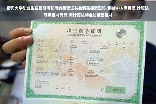大学毕业生在校期间获得的荣誉证书会,例如4\6级英语,计算机等级证书等等.这些东东是国家认证的,当然会有记录的,当然不是把证书放在里面,放不下,但是里面有你的记录:如XX年,XX以XX分通过了国家英语四级等.但是另外的一种情况,如:你在学校的演讲比赛得奖,在作文大赛里面得奖,或者就是说班上或者社团里面获得奖,如果你上报了的话,会在你的每学期的记录上获奖情况那一栏有的,如果没有上报的话就没有了.学校现在应该都有素质拓展的认证吧,上面有详细的记录.北京反正基本的学校都有!放心吧,四六级,计算机啊是有的!!!:)