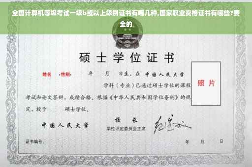 全国计算机等级考试一级b或以上级别证书有二级vb、二级c语言、二级C++、二级Java、二级WEB程序设计、二级VFP、三级PC技术、三级信息管理技术、三级数据库技术、三级网络技术等。 全国计算机等级考试(NationalComputerRankExamination,以下简称NCRE),是经原国家教育委员会(现教育部)批准,由教育部考试中心主办,面向社会,用于考查非计算机专业应试人员计算机应用知识与技能的全国性计算机水平考试体系。