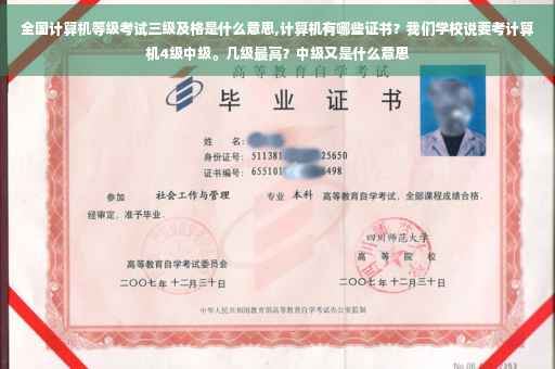 全国计算机等级考试三级及格的意思是通过了全国计算机三级考试所有科目并获得三级证书。