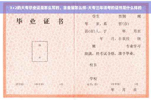 3+2大专是中专学校开设的一种班,就是初中毕业生在中专报名读五年书就可以直接拿大专毕业证了,其实是成人高考大专毕业证,只有通过对口高职进入的大专才是全日制,所以3+2的大专毕业证是成人高考大专毕业证,含金量不如全日制。
