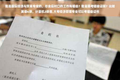 六是从事教学研究。 考证,英语六级、计算机二级是必要的,尤其外语等级分数越高越好。其它专业证书,并不太重要,近年国贸岗位对证书并没有要求,做外贸外销员、跟单员、报关员、外贸会计等证书也可考虑考一下。如果将来打算进入金融机构就业,可考银行从业资格、证券从业资格、基金从业资格。