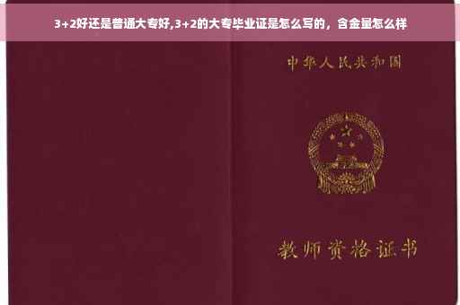 3+2大专是中专学校开设的一种班,就是初中毕业生在中专报名读五年书就可以直接拿大专毕业证了,其实是成人高考大专毕业证,只有通过对口高职进入的大专才是全日制,所以3+2的大专毕业证是成人高考大专毕业证,含金量不如全日制。