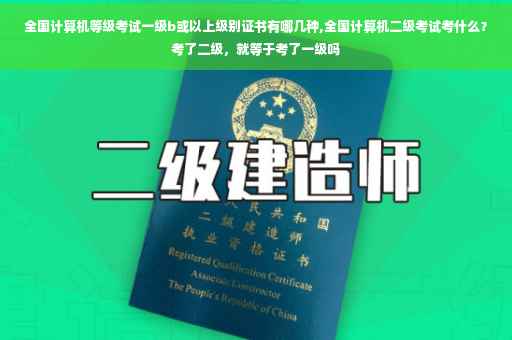 全国计算机等级考试一级b或以上级别证书有二级vb、二级c语言、二级C++、二级Java、二级WEB程序设计、二级VFP、三级PC技术、三级信息管理技术、三级数据库技术、三级网络技术等。 全国计算机等级考试(NationalComputerRankExamination,以下简称NCRE),是经原国家教育委员会(现教育部)批准,由教育部考试中心主办,面向社会,用于考查非计算机专业应试人员计算机应用知识与技能的全国性计算机水平考试体系。