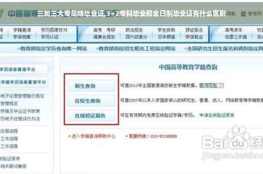 区别是学习学制不同,就业分配不同,升学优势不同。3+2专科毕业需要学习五年,而全日制毕业证需要学习四年。