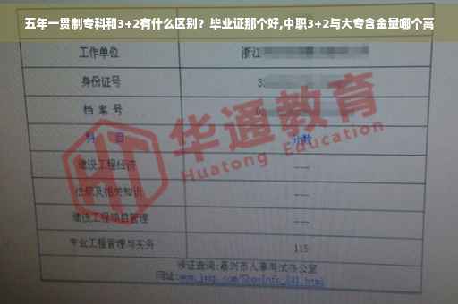 3+2大专班及五年一贯制大专文凭与通过普通高招录取的高职的大专文凭相同,所不同的是,3+2与五年一贯制录取的是应届初中毕业生,而高职录取的是参加普通高考的高中毕业生。这样说来,初中毕业生因成绩不好上不了普通高中,一样可以通过这两种形式上大学,选择上3+2高职和五年一贯制大专的初中毕业生和通过参加高考报考高职的学生,在毕业后拿到的大专文凭相同