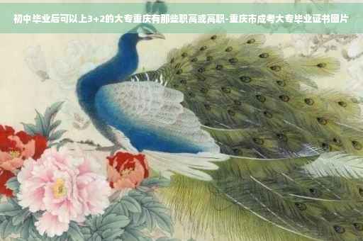 所有的公办中专、技校、职业技术学院都有针对初中3+2的大专。比如:重庆市巫山师范学校、重庆电大巫山分校、重庆工业管理职业学校(原重庆宗申职业技术学校) 、重庆3+2护理专业学校、重庆长寿卫生学校、重庆三峡师范学校学前教育(幼儿师范)3+2专业。