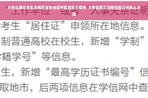 大家好,关于大专生简历没有技能证书怎么办的问题,于是小编就整理了4个相关介绍大专生简历没有技能证书怎么办的解答,让我们一起看看吧。