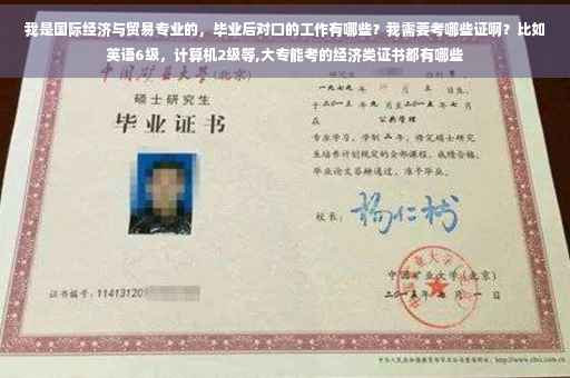六是从事教学研究。 考证,英语六级、计算机二级是必要的,尤其外语等级分数越高越好。其它专业证书,并不太重要,近年国贸岗位对证书并没有要求,做外贸外销员、跟单员、报关员、外贸会计等证书也可考虑考一下。如果将来打算进入金融机构就业,可考银行从业资格、证券从业资格、基金从业资格。