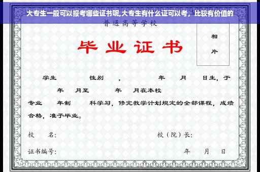 大专生可以考的有价值的证很多,学历只代表过去,学习的能力即学力和劲头才是主要的,推荐你如果有空可以考一考中级经济师证、软考高项证等证书,一者这几个证书报名限制较少,对学历要求少,对工作年限也不做多要求,尤其是高项证报考啥条件都木有,小学文化都可以报;二者这几个证书的考试内容较少,如经济师考试内容是两本书,一本专业课一本基础课,认真看书俩月必搞定。高项证就一本书,翻来覆去看几遍三个月差不多就冲过去了,轻松!三者这几个证拿到手就是走遍天下都不怕,为啥?因为这是国家部委颁发的,全国通用的,经济师证在单位可应聘中级职称,高项证可应聘副高级职称,不用劳心费神评审即可。