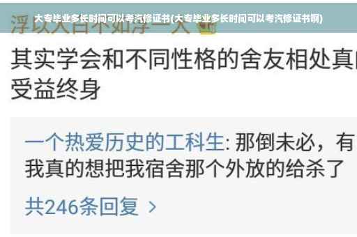 大家好,关于大专毕业多长时间可以考汽修证书的问题,于是小编就整理了4个相关介绍大专毕业多长时间可以考汽修证书的解答,让我们一起看看吧。