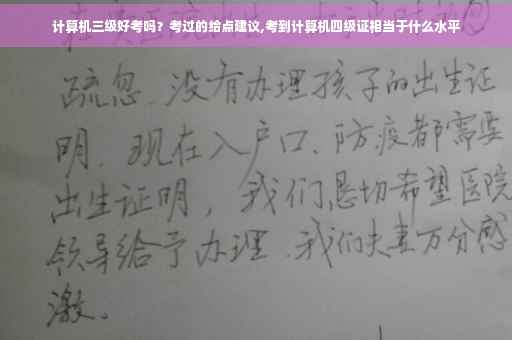 计算机三级,其实是很好考的。。。1.只要你把书看了,多做几套模拟题,或者真题,保证过是没问题的2.三级分机试跟笔试,笔试一定要多做模拟题,你会发现很多题是重复的,而且选择题占了很大一部分,这样你就可以凭记忆去记住一些,机试吗,有时候运气占很大的成分,但是幸运的是难题本来就不多,你抽到的很多都是简单题,也是多做模拟题,买一个上机一百题,做个前三十套,后面基本都是一样的,基本题型就那么多,当然,做完是最好的3.最不济还可以分两次过,三级是会给你保留一次成绩的,你可以先过完笔试或者机试,下次在过剩下的,当然,这个不推荐,最好一次性考过4.只要用心,三级很轻易就过的,不要担心