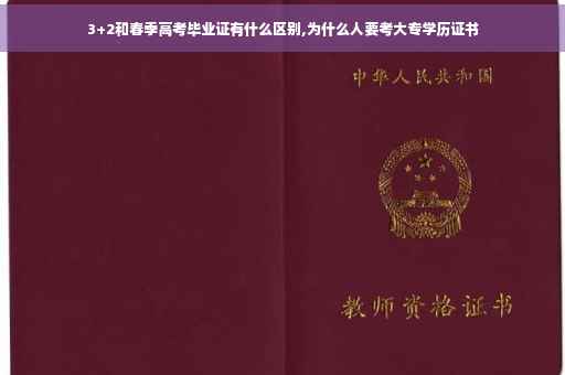 3+2和春季高考毕业证是不一样的,3+2是初中考入中专,三年以后再继续读两年专科也就是高职之类的,然后毕业证是3+2专科,而春季高考和夏季高考差不多,只不过就是提前录取,然后职业学院和独立学院居多,且只能在本省内上本科,毕业之后学历就是普通本科学历。