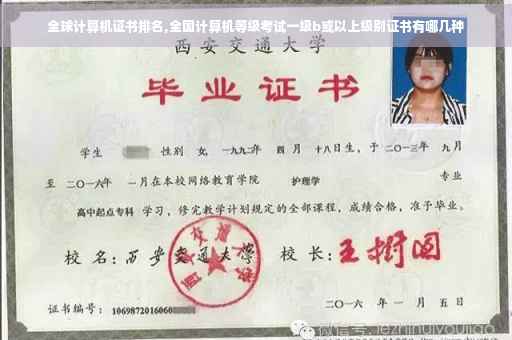 全国计算机等级考试一级b或以上级别证书有二级vb、二级c语言、二级C++、二级Java、二级WEB程序设计、二级VFP、三级PC技术、三级信息管理技术、三级数据库技术、三级网络技术等。 全国计算机等级考试(NationalComputerRankExamination,以下简称NCRE),是经原国家教育委员会(现教育部)批准,由教育部考试中心主办,面向社会,用于考查非计算机专业应试人员计算机应用知识与技能的全国性计算机水平考试体系。