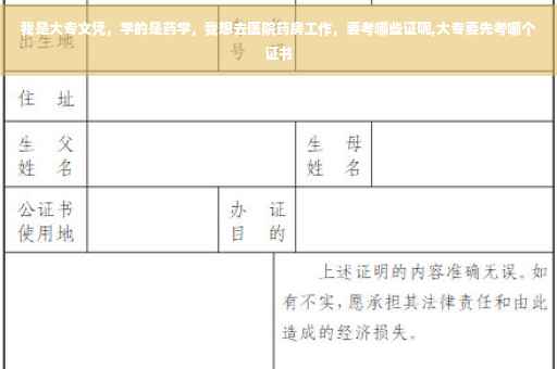 你说考证,也不存在,药学相关无非就是药师证,执业药师证这些,都是必须有工作经历才能考,如果你想从事这个行业考其他的证也没有意义。