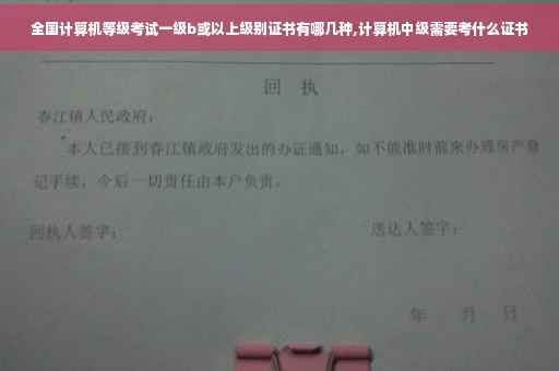 全国计算机等级考试一级b或以上级别证书有二级vb、二级c语言、二级C++、二级Java、二级WEB程序设计、二级VFP、三级PC技术、三级信息管理技术、三级数据库技术、三级网络技术等。 全国计算机等级考试(NationalComputerRankExamination,以下简称NCRE),是经原国家教育委员会(现教育部)批准,由教育部考试中心主办,面向社会,用于考查非计算机专业应试人员计算机应用知识与技能的全国性计算机水平考试体系。