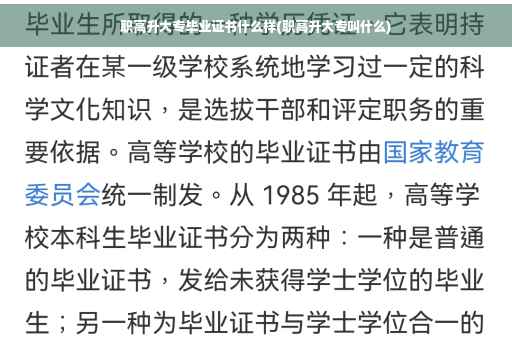 大家好,关于职高升大专毕业证书什么样的问题,于是小编就整理了3个相关介绍职高升大专毕业证书什么样的解答,让我们一起看看吧。