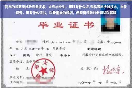 医学检验技术专科毕业,工作一年后可以考检验士,工作三年后可以考检验师。考取检验师资格证之后,担任检验师满五年,考主管技师。在之后就是副主任和主任技师了。话说,检验专业的在检验科工作的话只需要考取检验资格证书就可以了。其他资格证不需要。