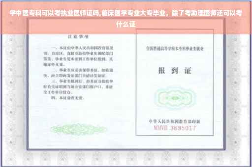 中医学可以考执业医师,具有高等学校中医学专业本科以上学历,毕业后在医疗、保健机构中试用期满一年的,可以申请参加中医执业医师资格考试;取得执业助理医师执业证书后,具有高等学校中医学专科学历,在医疗、保健机构中工作满二年也可以参加中医医师资格考试。医师资格证书全称应该是执业医师资格证,算是对某个医务人员相关医疗技术的认可,具有独立从事医疗活动的准入性资格证书(红色封面的证书,证书永久有效)。执业医师可以分为四大类别:临床、中医、口腔、公共卫生。