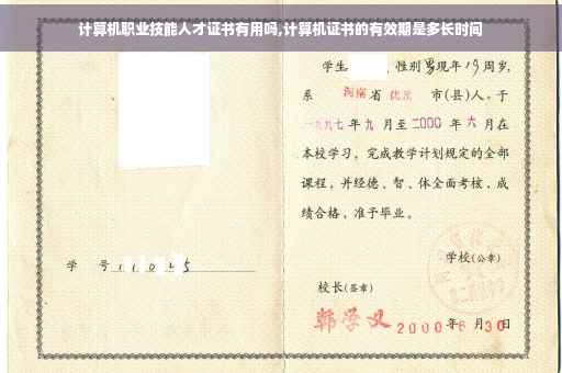 全国计算机等级考试就没有期限,但计算机专业技术资格(水平)证书有效期为三年(自批准或登记之日起算)。全国计算机技术与软件专业技术资格(水平)证书实行定期登记制度,每三年登记一次。期满前三个月内,需要到原登记机构进行再登记。计算机信息系统集成资质证书有效期为四年,有效期到期需换证。