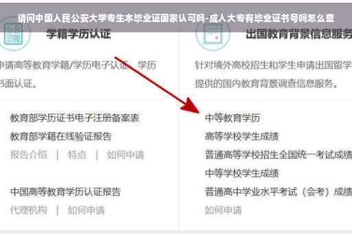 认可,中国人民公安大学继续教育学院具备颁发的学历学信网可查,考研、考公务员都认可。 中国人民公安大学成人教育自1985年,成人高等教育办学层次为高中起点专科,毕业颁发国家承认学历的成人高等教育专科毕业证书。 中国人民公安大学继续教育包括自学考试、脱产、函授、夜大学、本专科预科班等成人学历教育在内的结构合理、层次分明、衔接紧密的多层次公安成人教育体系、并取得了举办成人高等教育的丰富教学管理经验。