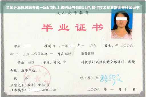 全国计算机等级考试一级b或以上级别证书有二级vb、二级c语言、二级C++、二级Java、二级WEB程序设计、二级VFP、三级PC技术、三级信息管理技术、三级数据库技术、三级网络技术等。 全国计算机等级考试(NationalComputerRankExamination,以下简称NCRE),是经原国家教育委员会(现教育部)批准,由教育部考试中心主办,面向社会,用于考查非计算机专业应试人员计算机应用知识与技能的全国性计算机水平考试体系。
