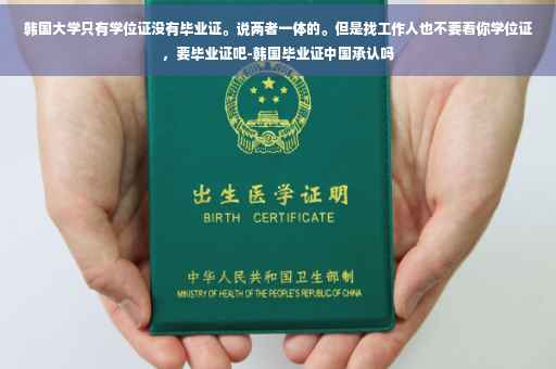 中国国家留学服务中心发布的承认学历的外国大学名单,里面包括承认学历的韩国大学,可以去看看。一般的韩国大学学历中国政府都认可,毕业以后,需要中国驻韩大使馆出具毕业证明,只要证明开了,就是承认了,回国后在留学服务中心认证一下就ok了。