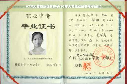 大家好,关于97年大专毕业证书样子的问题,于是小编就整理了3个相关介绍97年大专毕业证书样子的解答,让我们一起看看吧。
