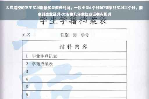 大专院校有些专业是第三年就开始实习了,所以就实习一年,不同的学习不同的专业有不同的要求,一般都是实习六个月在实习单位盖了章证明你实习了一般都可以毕业,拿到毕业证的。