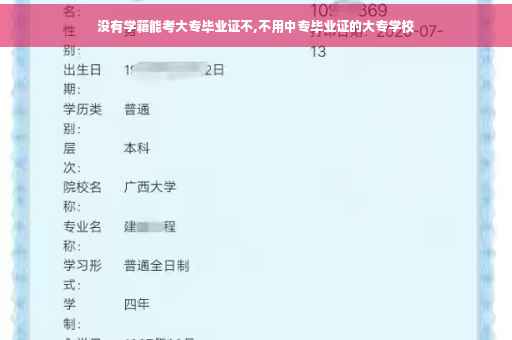 没有不用中专毕业证的大专学校。因为大专都是需要中专毕业证原件的,全日制大专在学生办理报名的时候也是需要学生出示中专毕业证,非全日制函授大专报名也需要中专毕业证,非全日制成人高考大专也是需要有中专毕业证才能参加成人高考