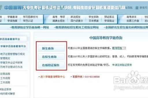 不只是专科生,本科生还要考计算机二级的,专科生大多数是考一级就可以了,这个是必须考的。至少基础级别得三级吧,像现在大家说的三级、四级,其实只是计算机领域初级水平的级别,要是真想在此方面发展,得考微软或者思科认证的证书,什么软件工程师啊、网路工程师之类的,那种才有含金量啊!计算机等级考试主要用于考查应试人员计算机应用知识与能力的全国性计算机水平考试体系。一级太简单,一般智力没什么问题的,都能考得过。二级、三级、四级的笔试相对来说较简单,机试主要是语言类考察有一定难度。但这些语言,一般的理工科都会学到其中的一种或几种,只要好好复习下,都不难过,这对计算机专业的学生来说更不成问题。也正因为这样,正因为含金量少,所以对你来说它的必要性大大降低。