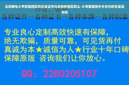 没有区别。北京邮电大学宏福校区主要是安排国际学院、民族教育学院和继续教育学院的学生。国际学院设有三个中外合作办学专业――电信工程及管理、电子商务及法律、物联网工程。三个中外合作办学专业用“北京邮电大学(宏福校区)”的名称在本科一批招生,而中外合作办学专业的毕业证该校其他普通本科专业一样,由北京邮电大学颁发,没有不同。同时还可获得英国玛丽女王大学学士学位证书。该校其他专业用“北京邮电大学”的名称在本科一批招生。实际上,大部分学校明显区别于“分校”的是,“分校区”大多指“本校分部”,即“分部不分校”,“分校区”在各方面都直接受“本部”领导,不存在独立运行的状况。